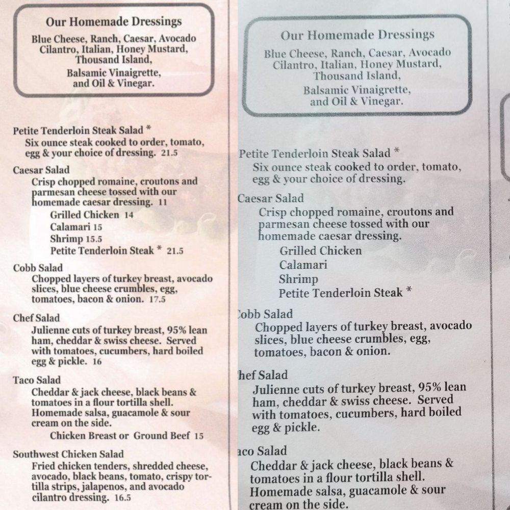 for Large Crisp Chopped Romaine, Croutons and Parmesan Cheese tossed with our homemade Caesar Dressing. Topped with oz petite tenderloin steak.